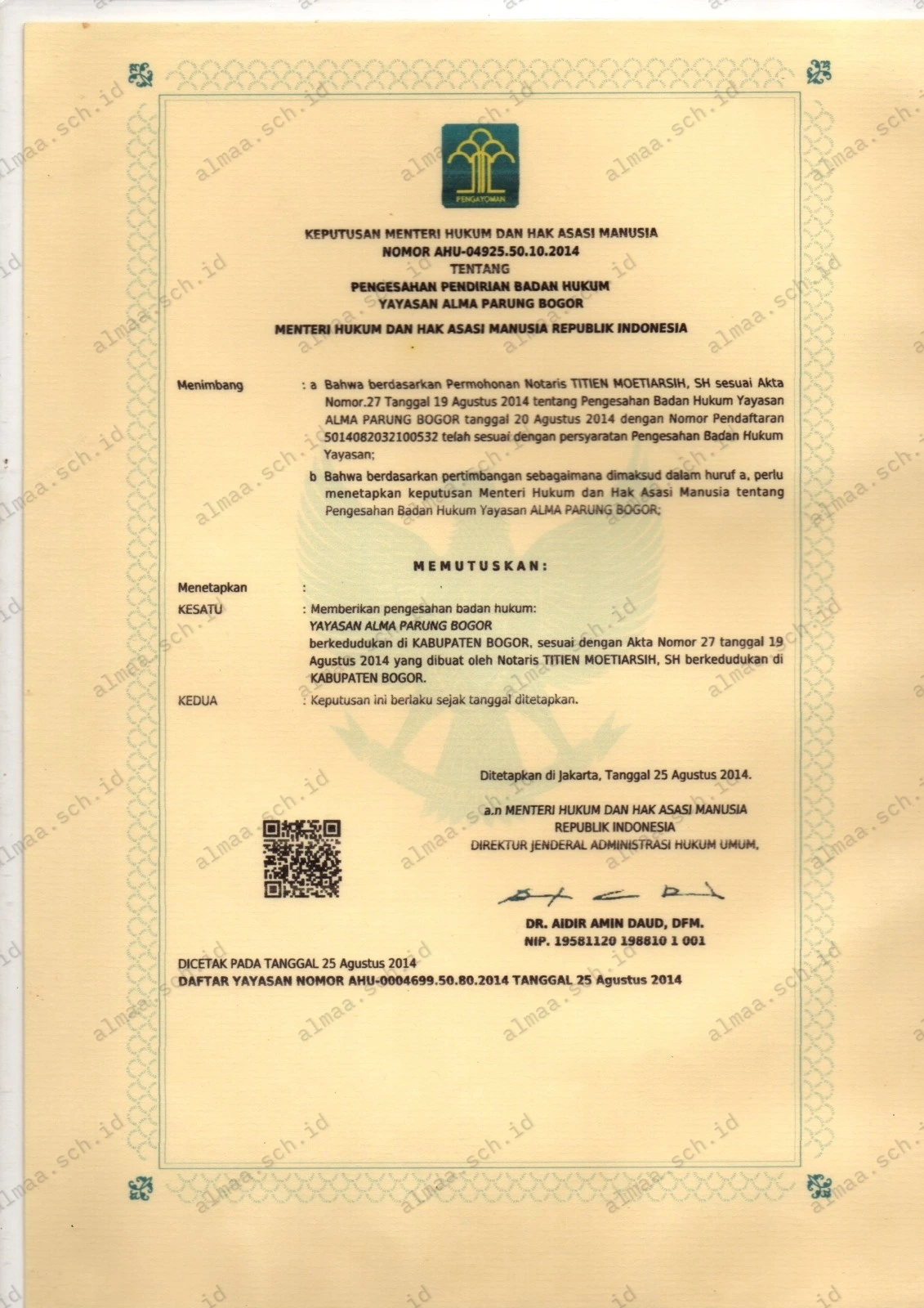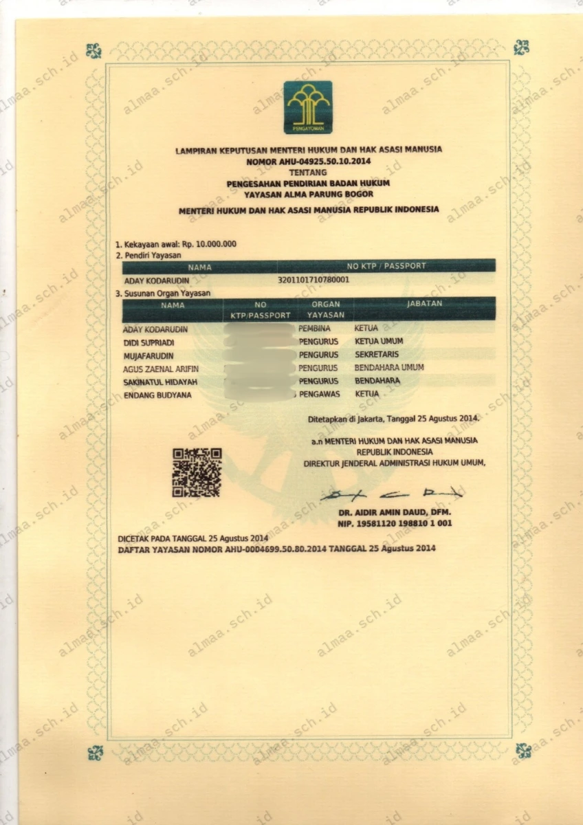 Surat Keputusan Pendirian Yayasan Al-Maa